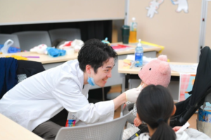 体験コーナーでは歯科医師の先生のご協力の元、